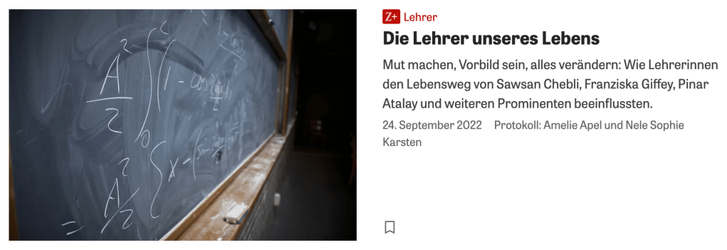 In der Schule hat man es nicht immer leicht. Ein Glück, wenn da jemand ist, der Mut macht, unterstützt und begeistert. Hier erzählen elf Prominente von den Lehrern ihres Lebens.