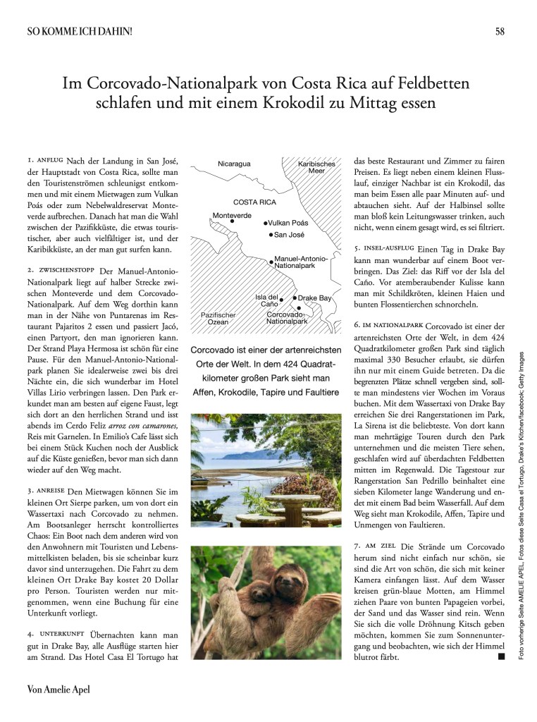 Im Corcovado-Nationalpark von Costa Rica auf Feldbetten schlafen und mit einem Krokodil zu Mittag essen.