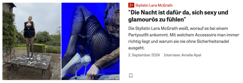 Lara McGrath ist für ihre Inszenierungen in Umkleidekabinen bekannt. Hier zeigt die Stylistin neue Partymode – und erklärt, warum sie nie ohne Sicherheitsnadel ausgeht.