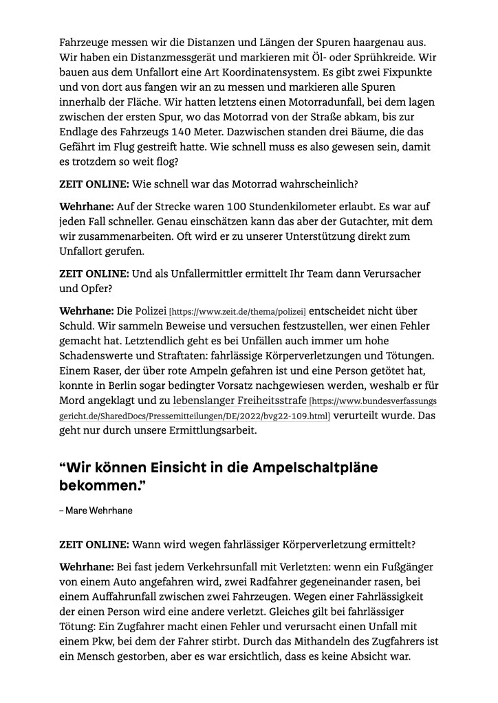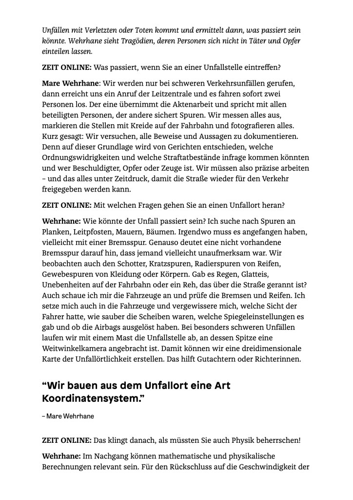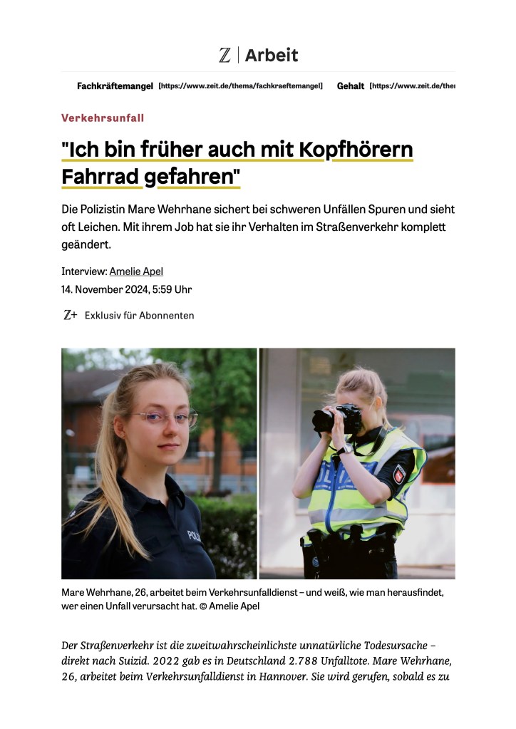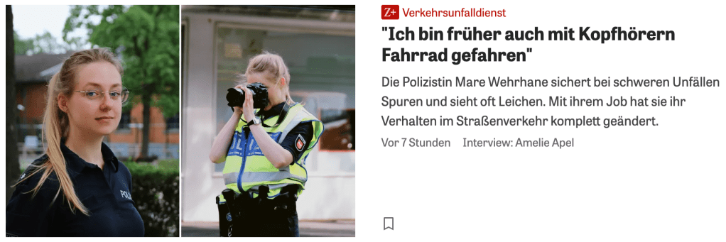 Die Polizistin Mare Wehrhane sichert bei schweren Unfällen Spuren und sieht oft Leichen. Mit ihrem Job hat sie ihr Verhalten im Straßenverkehr komplett geändert.